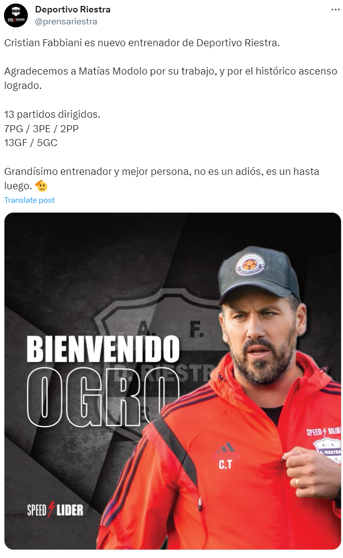 Concret, fostul atacant a preluat-o, din postura de antrenor principal, pe Deportivo Riestra, nou-promovată în prima ligă argentiniană de fotbal. Conducerea a decis să-l instaleze în locul lui Matias Modolo.
