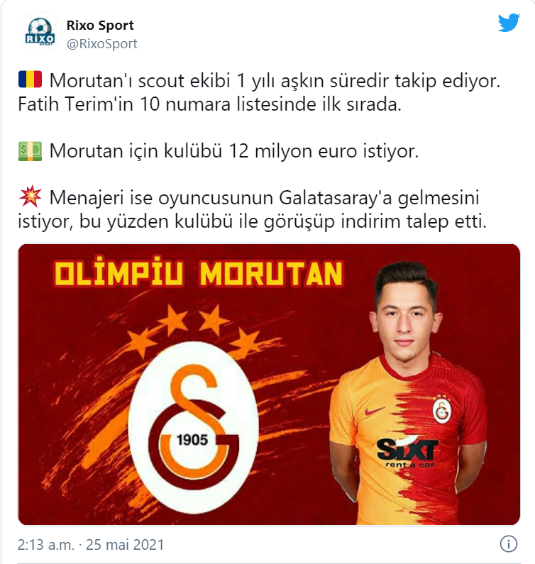 Moruţan ar fi primul pe lista lui Fatih Terim, conform RixoSport. Se pare că oficialii din Turcia îi urmăresc activitatea de un an de zile, iar acum, ei ar dori să obţină o reducere. Ceea ce nu știu ei însă este că Gigi Becali nu se va depărţi de fostul jucător de Botoşani pentru o sumă de bani mai mică. Patronul FCSB vrea să aibă un lot puternic pentru sezonul viitor. În plus, el a declarat că vrea să câştige Conference League.
