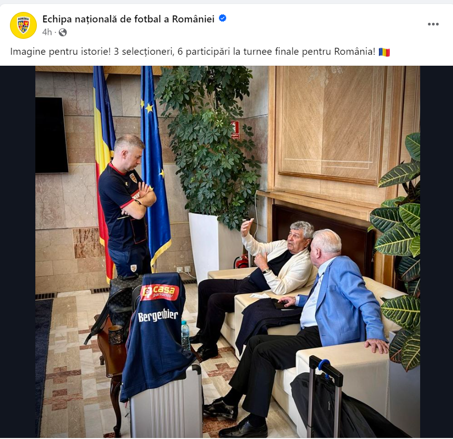 „Imagine pentru istorie! 3 selecționeri, 6 participări la turneele finale pentru România!”, este mesajul care însoțește postarea. În câteva ore, aceasta a adunat aproape 2.000 de like-uri.