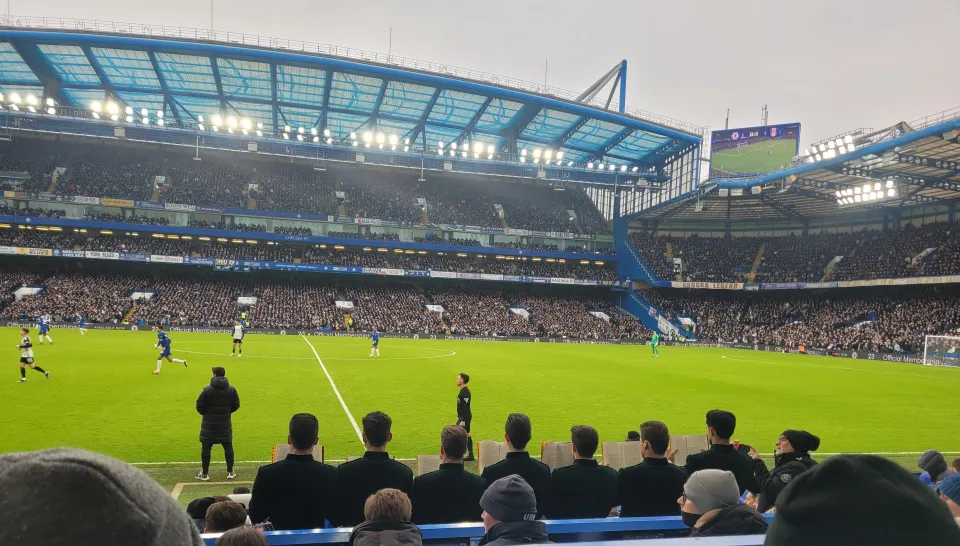Un grup de bărbați cu tunsoare similară și purtând jachete de catifea verde au fost așezați în unele dintre cele mai bune locuri din stadion – chiar în spatele băncii de rezerve a lui Chelsea.