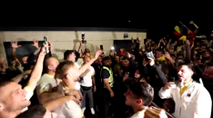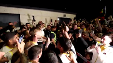 Jucătorii au avut o surpriză când au coborât din autocar. Fanii strânși într-o zonă din fața hotelului i-au întâmpinat. Ținuți cu greu în spate de stewarzi, suporterii au primit toată recunoștința băieților lui Iordănescu Jr. Mogoș a adus boxa, iar jucătorii au început să cânte alături de fani. În centrul atenției au fost Florinel Coman și Denis Alibec. Amândoi le-au făcut pe plac oamenilor din fața lor și au luat microfonul, pe rând, pentru „Made in Romania”.