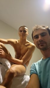 Kinetoterapeutul Dragoş Luscan a asistat la o sesiune de antrenament a lui David Popovici. Specialistul a publicat pe contul său de Facebook câteva imagini cu campionul în vârstă de 18 ani.