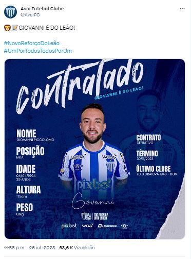 „Îmi închei astăzi perioada petrecută la FC Universitatea Craiova, din România. Îi mulțumesc în primul rând lui Dumnezeu pentru experiența trăită în Europa, îi mulțumesc familiei mele pentru că m-a susținut și a fost prezentă în toate momentele vieții mele și, nu în ultimul rând, mulțumesc staff-ului tehnic, echipei și celorlalți colaboratori ai Craiovei pentru momentele pe care le-am trăit împreună și din care am învățat”, a transmis fotbalistul.