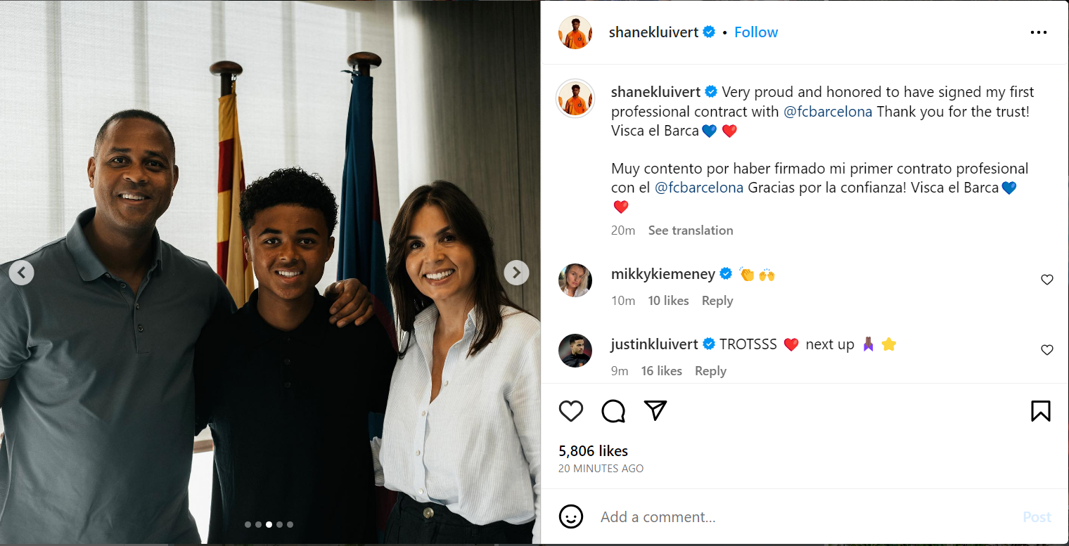 Patrick Kluivert are de ce să fie mândru. După ce doi dintre fiii săi au devenit fotbalişti şi şi-au făcut deja un nume în sportul rege, acum şi Shane, băiatul său în vârstă de 16 ani, a semnat primul său contract ca profesionist.