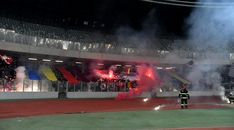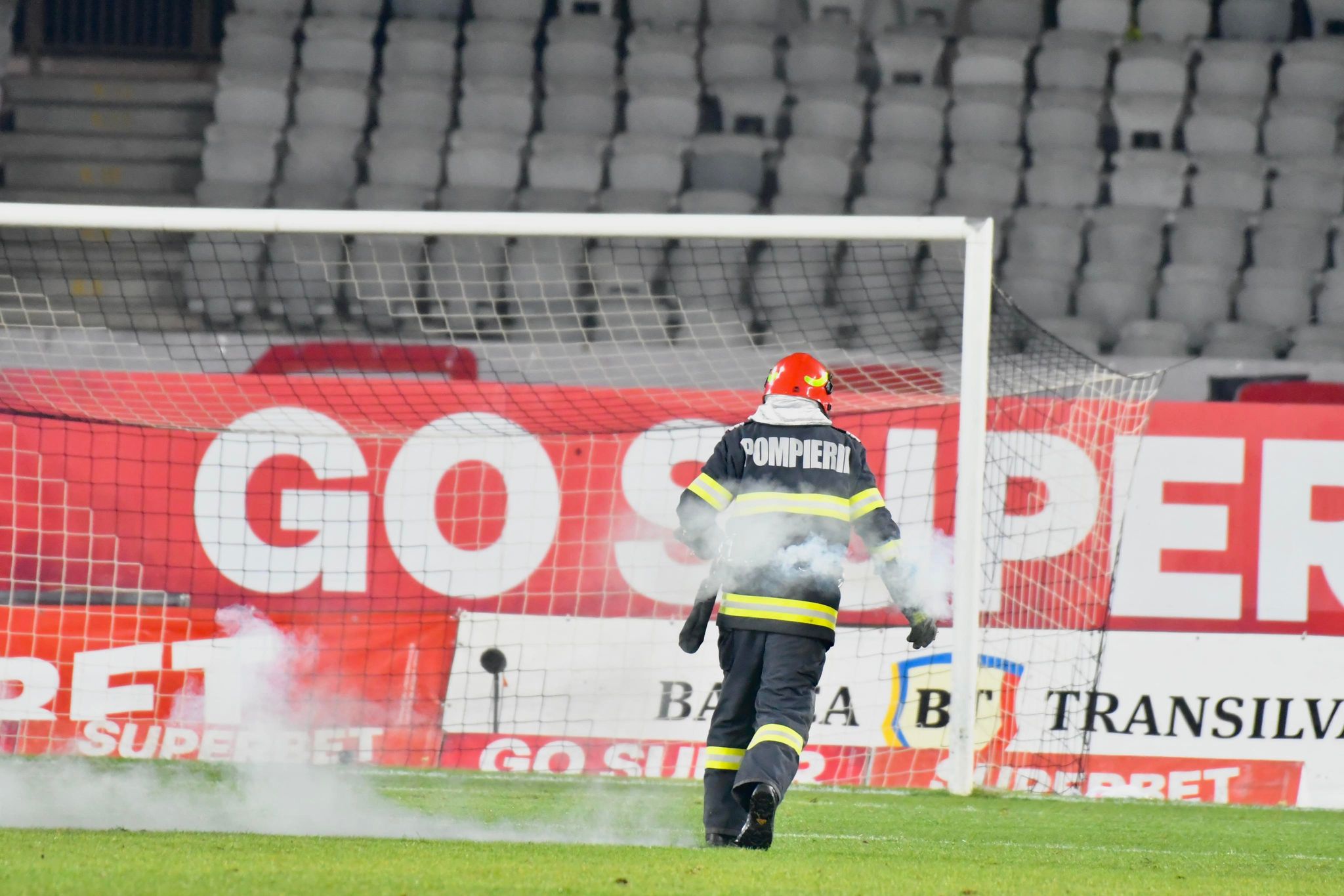 Fanii lui U Cluj au aprins torțele și au aruncat cu petarde, iar atmosfera a devenit irespirabilă. Timp de peste cinci minute, arbitrul nu a putut fluiera startul meciului. Nici după ce jocul a început, suporterii gazdelor nu s-au oprit.