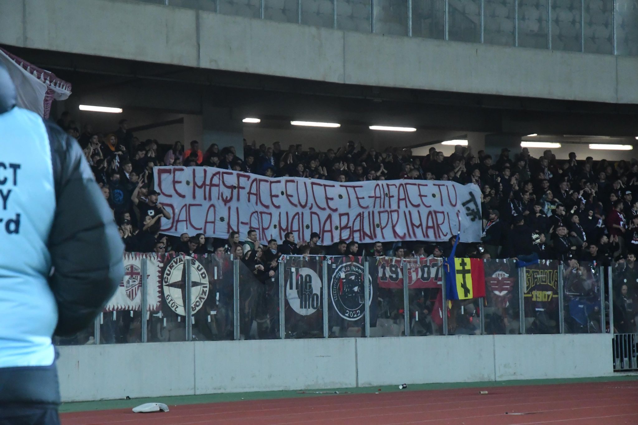 Peluza „șepcilor roșii” a afișat un banner uriaș: „Are you not entertained?” Peste 20 de mii de fani au luat loc în tribunele arenei. Nici susținătorii lui CFR Cluj nu au fost deloc puțini.