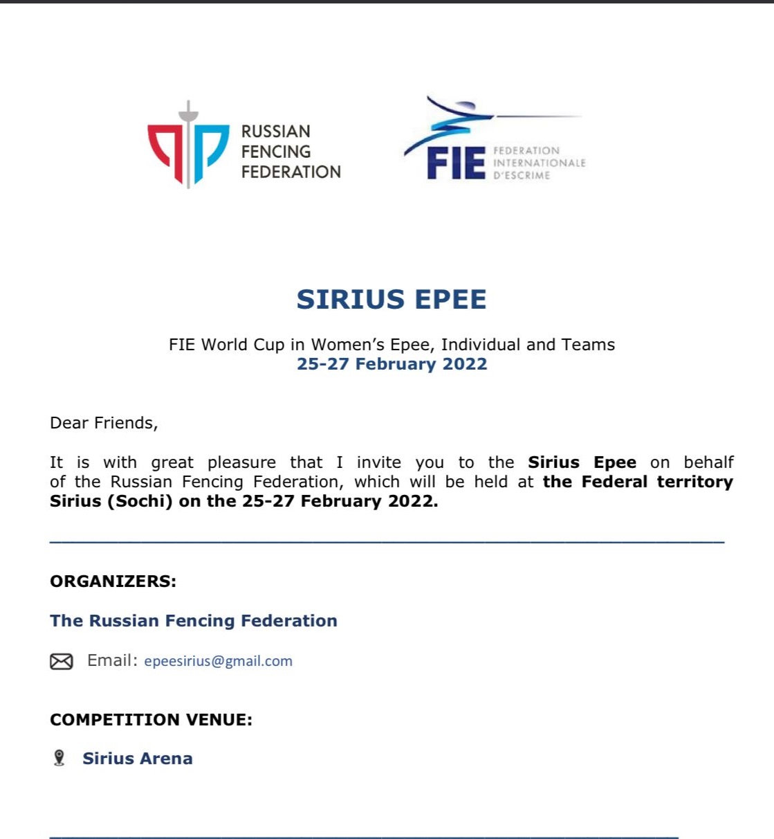 Nu am auzit nicio discuție referitoare la problema asta. Singura chestia care s-a discutat ieri a fost că sportivii sau țările care vor să se retragă din competiție, li se va plăti, din partea Federației Internaționale de Scrimă, suportul financiar.