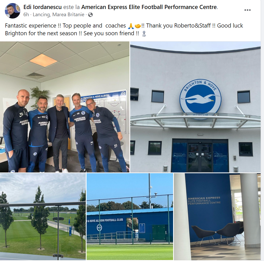 „O experiență fantastică. Oameni de top și antrenori pe măsură. Îi mulțumesc lui Roberto și staff-ului său. Mult succes în sezonul următor, Brighton. Abia aștept să ne revedem, prieteni”, a transmis Edi Iordănescu.