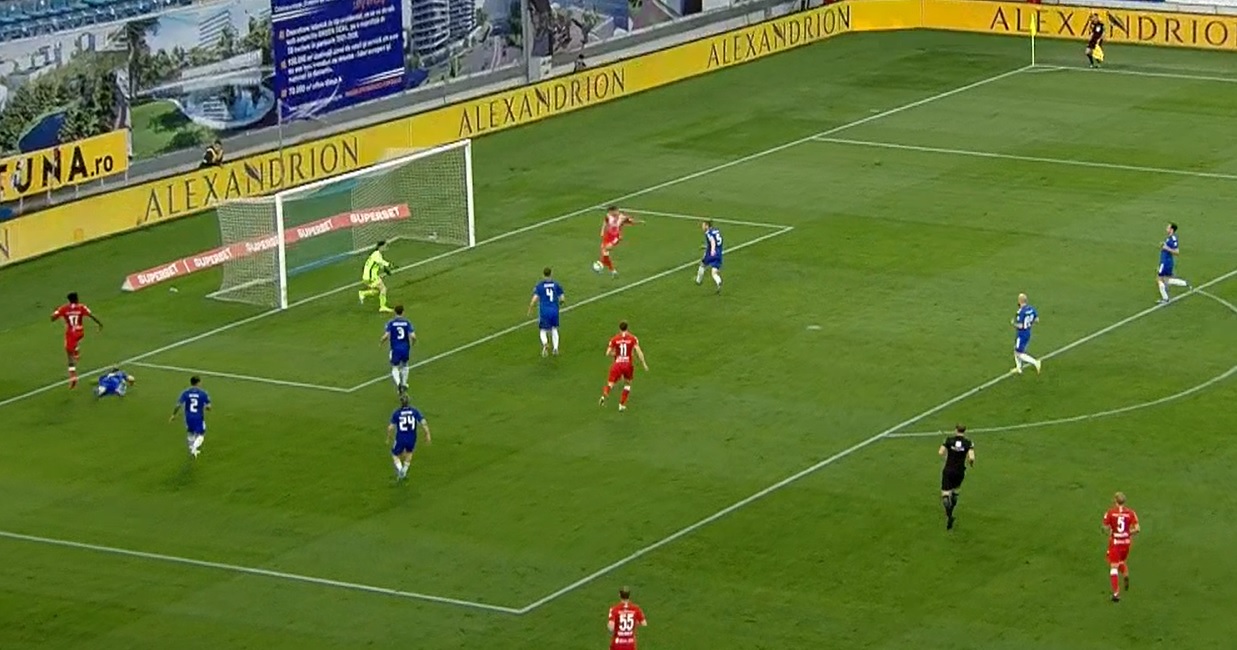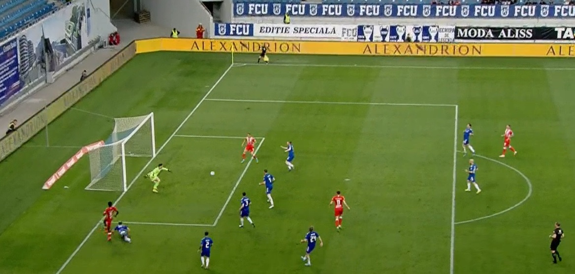 Imediat după ce FC U Craiova a deschis scorul, oaspeții au fost aproape de egalare. În minutul 60, Karolis Laukzemis a făcut ce a vrut cu jucătorii gazdelor, i-a pasat lui Otele, care a centrat ideal pentru David Miculescu.