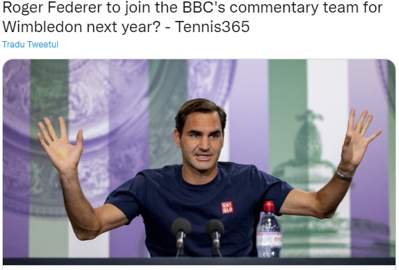Retras din tenis la Laver Cup, în septembrie 2022, Federer nu poate sta mult timp departe de tenis. Potrivit presei din Anglia, Sue Barker a dezvăluit că legendarul tenismen s-ar putea alătura echipei de comentatori ai BBC.