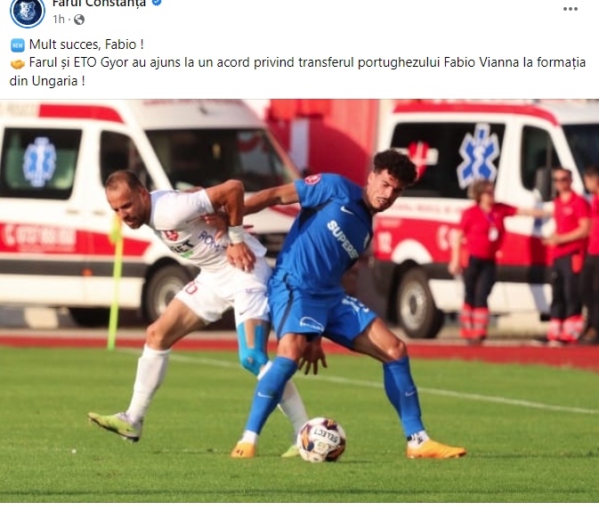 „Mult succes, Fabio! Farul și ETO Gyor au ajuns la un acord privind transferul portughezului Fabio Vianna la formația din Ungaria!”, se arată într-un comunicat emis de Farul.
