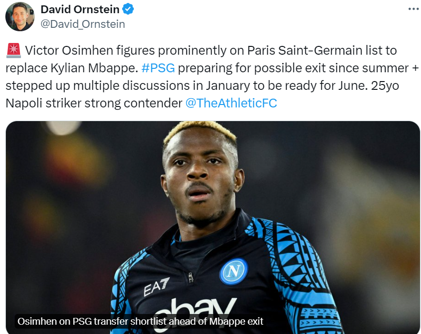 La aflarea veștii că își vor pierde în vară cel mai important jucător, șeicii au început să creioneze strategia de transferuri. Principala țintă este, potrivit jurnalistului britanic David Ornstein, Victor Osimhen.