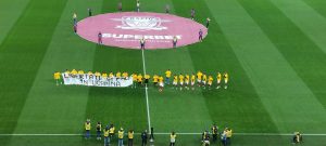 INFO: Stop WAR este grafica afișată de Digi Sport la începutul partidei. Astfel, se continuă un trend adoptat de marile televiziuni din Occident. Și jucătorii au avut un mesaj pentru Ucraina.