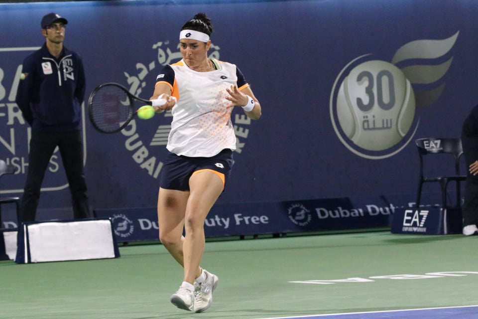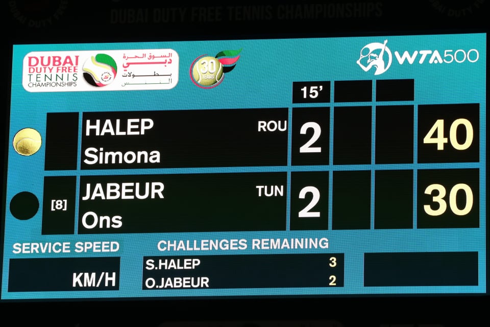 Ons Jabeur în meciul cu Simona Halep, de la Dubai. FOTO: Playsport