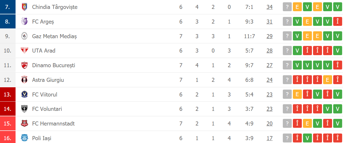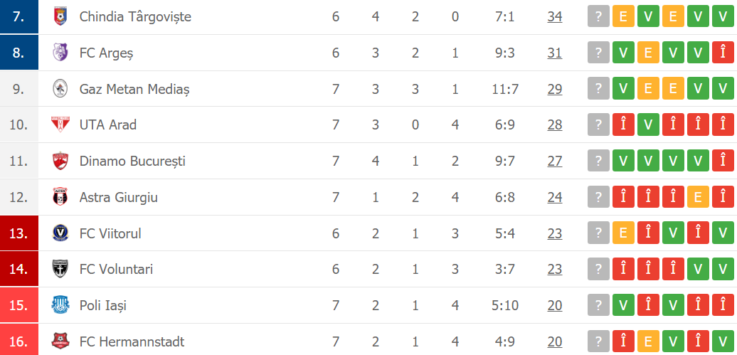 De partea cealaltă, UTA Arad este pe locul 4 din play-out, cu 28 de puncte. Arădaneii au 5 puncte avans față de primul loc din zona roșie. UTA vine după două eșecuri pe teren propriu, scor 0-1 cu Hermannstadt și 0-1 cu Chindia Târgoviște, iar Laszlo Balint nu mai acceptă un nou pas greșit al echipei sale.