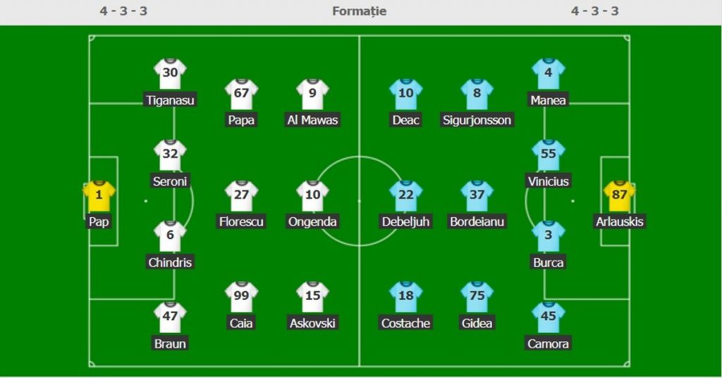 Rezerve: 12. Sandomierski, 5. Soares, 7. Ad. Păun, 15. Ben Youssef, 16. Susici, 27. Chipciu, 28. Hoban, 98. Carnat, 99. Rondon