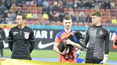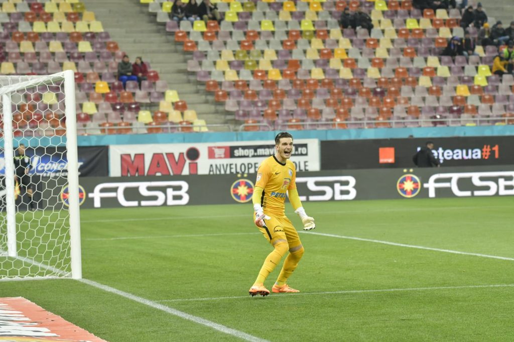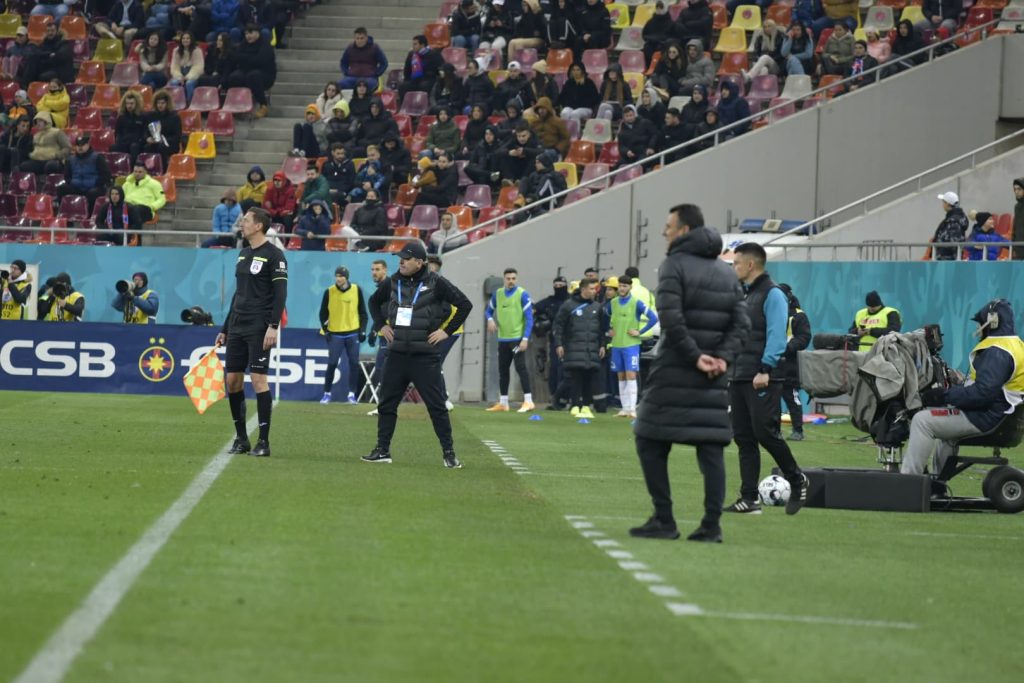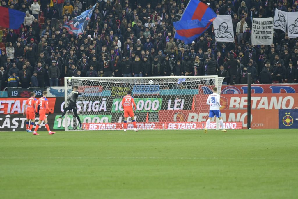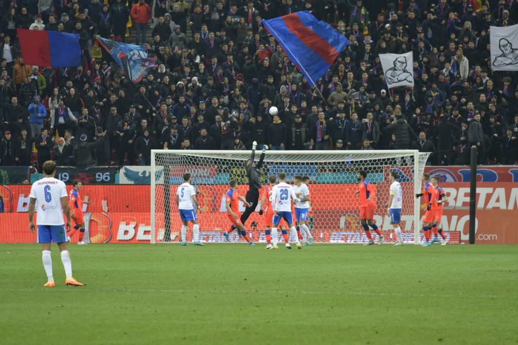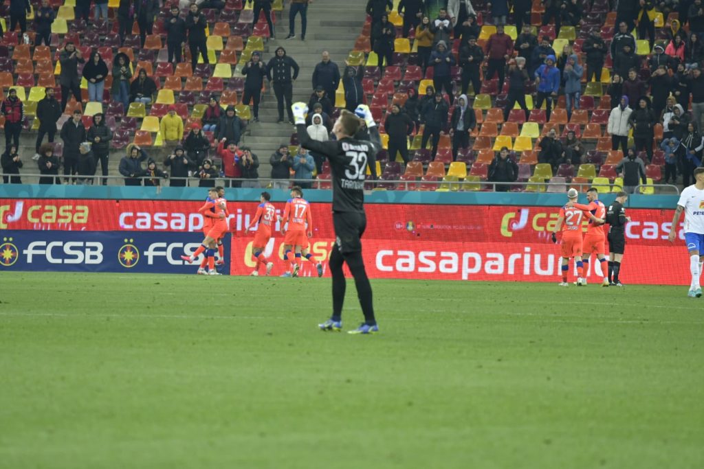 Minutul 39: Apără Târnovanu! Jefte Betancor a șutat superb de la marginea careului, la colțul lung, dar portarul FCSB-ului a plonjat spectaculos și a respins în afara terenului. Intervenție excelentă a lui Târnovanu. Iulian Cristea îi reproșează lui Darius Olaru că nu l-a urmărit pe Jefte după ce l-a pierdut pe acesta.
