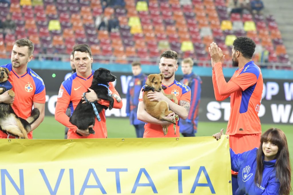 Minutul 1: A început meciul FCSB – Farul Constanța! Campania „Umple golul din viața ta” continuă și la acest meci. Puteți citi AICI de ce acest demers a devenit un succes uriaș. Sute de câini au fost adoptați.