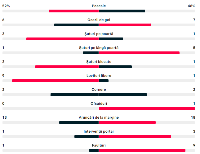 Minutul 45+3: Pauză. Iată cum arată statistica după prima repriză: