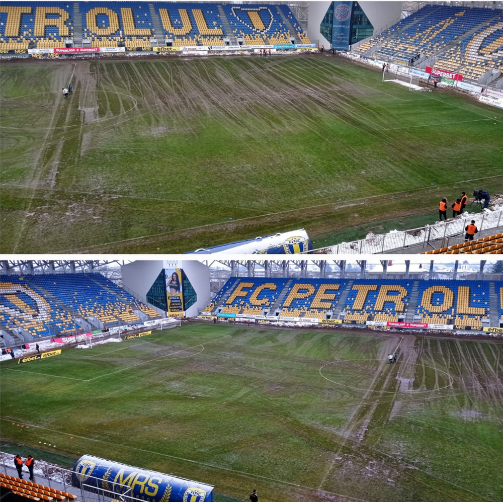 INFO: Gazonul arată groaznic, iar Nae Constantin a recunoscut înaintea partidei că ar fi preferat ca aceasta să fie amânată. Cu toate acestea, meciul se va disputa conform programării