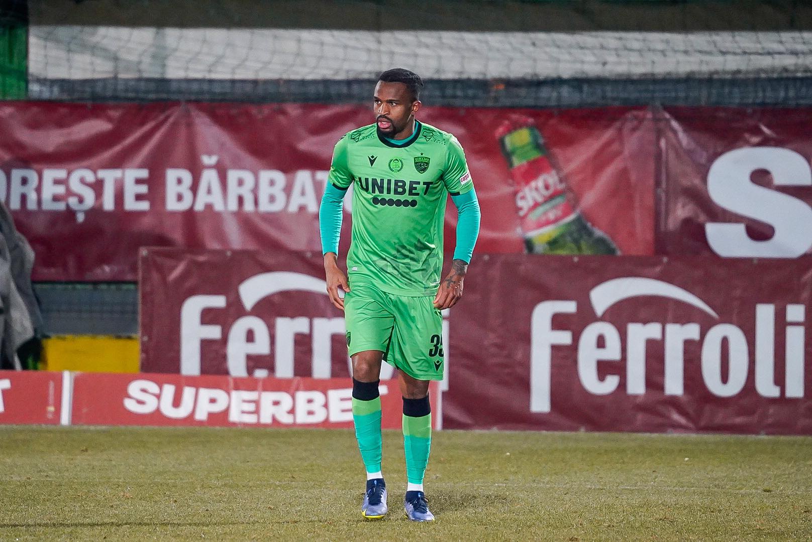 Min. 30: GOL RAPID! Adrian Bălan șutează puternic dintr-o lovitură liberă de la circa 30 de metri, mingea capătă o traiectorie neobișnuită și îl păcălește pe Figueiredo, deși s-a dus pe centrul porții.