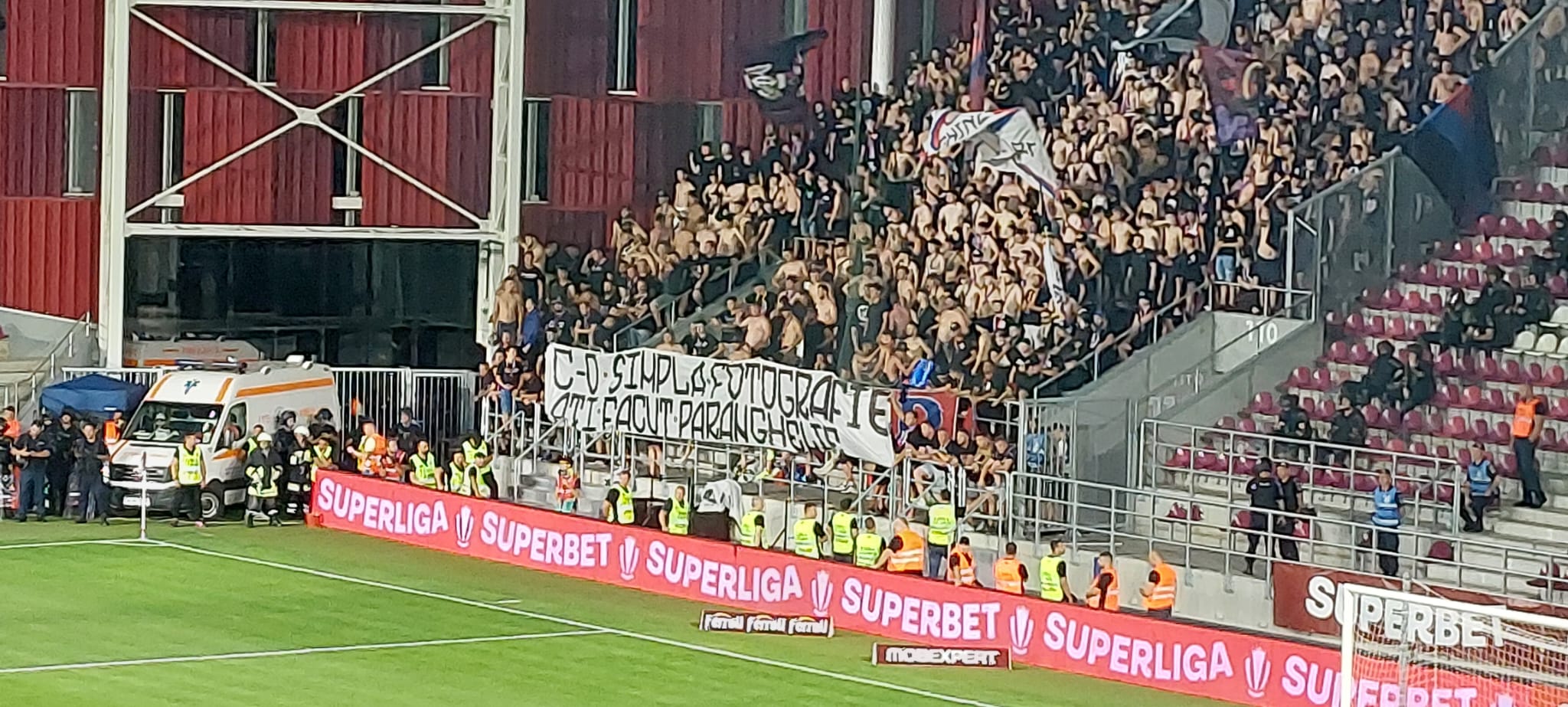 „C-o simplă fotografie, ați făcut paranghelie”, mesaj afișat de roș-albaștri cu referire la ce s-a întâmplat cu o zi înaintea meciului.