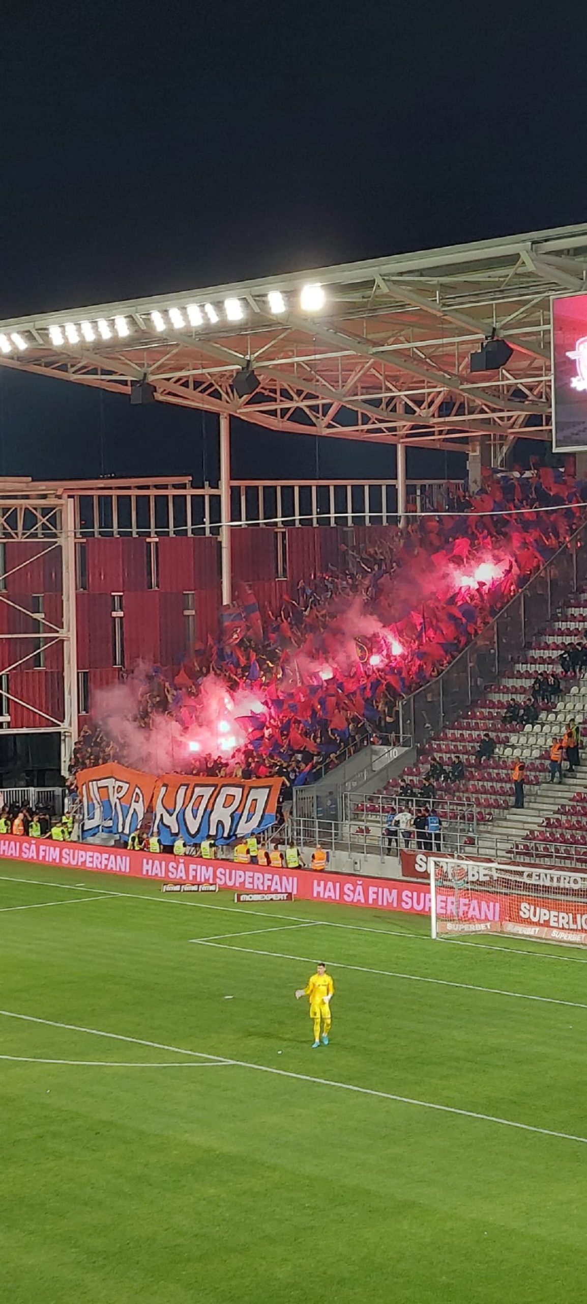 Imediat după fluierul de start, fanii oaspeți au pus în scenă un show pirotehnic de amploare. Istvan Kovacs a întrerupt meciul în minutul 2 din cauza petardelor aruncate pe gazon de Peluza Nord FCSB.