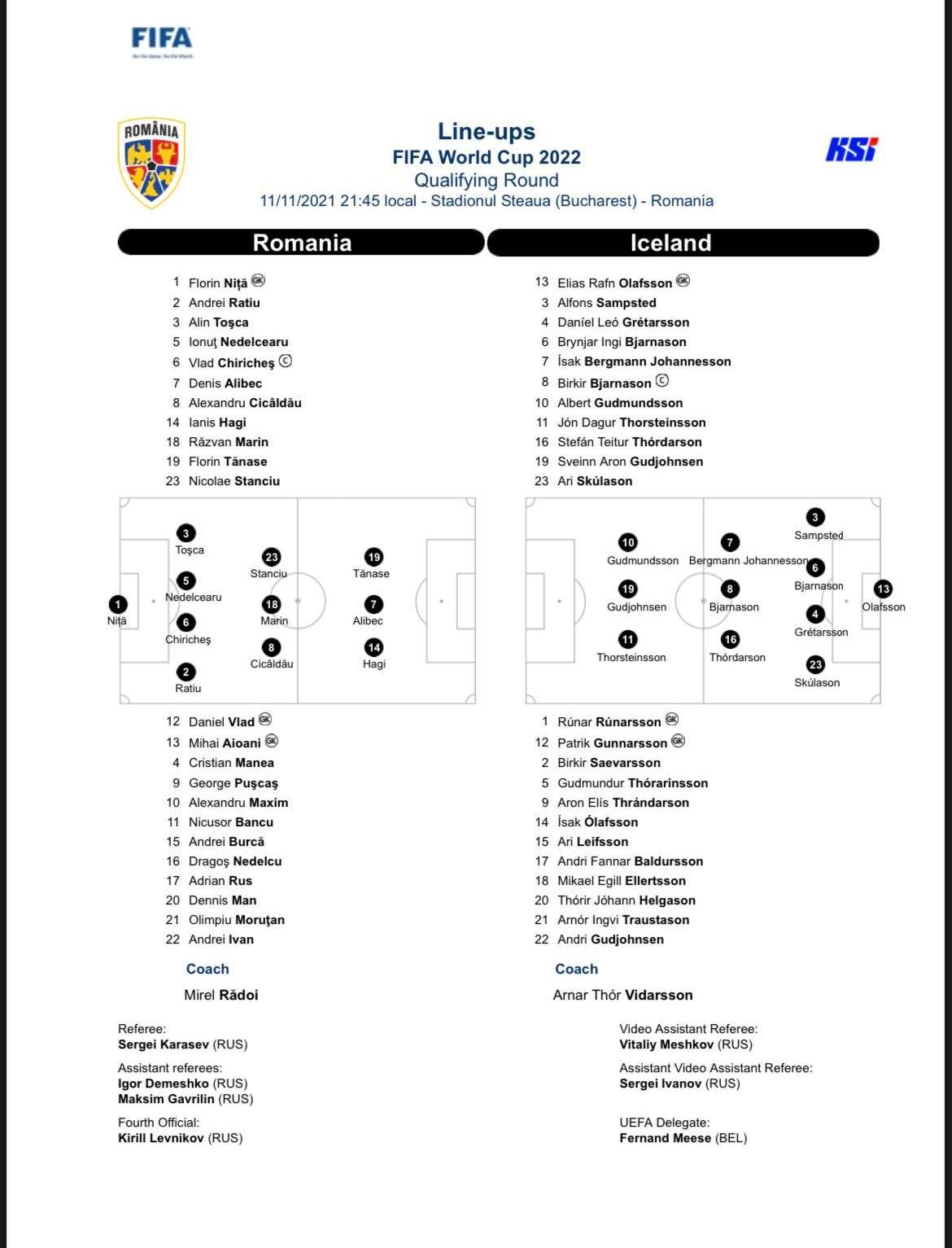 România înfruntă în această seară de la 21:45 selecționata Islandei. Partida de pe stadionul ”Steaua” face parte din Grupa J a preliminariilor pentru Cupa Mondială din 2022. Înaintea meciului, ”tricolorii” se află pe poziția a doua a grupei, având 13 puncte. Pentru a merge în barajul de calificare, naționala României trebuie să învingă diseară echipa nordică, dar și Liechtenstein pe data de 13 noiembrie. În această situație, elevii lui Mirel Rădoi nu au voie să facă niciun pas greșit în aceste două meciuri.
