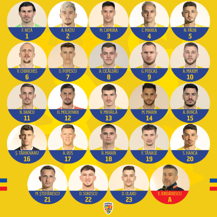 MIJLOCAȘI: Deian Sorescu (Rakow Czestochowa | Polonia, 5/0), Alexandru Cicâldău (Galatasaray | Turcia, 22/3), Darius Olaru (FCSB, 3/0), Alexandru Maxim (Gaziantep F.K. | Turcia, 52/6), Sergiu Hanca (KS Cracovia | Polonia, 5/0), Octavian Popescu (FCSB, 2/0), Nicolae Păun (Sepsi OSK, 0/0), Valentin Mihăilă (Atalanta | Italia, 7/1), Alexandru Mitriță (PAOK Salonic | Grecia, 17/3), Alexandru Crețu (Universitatea Craiova, 5/0), Răzvan Marin (Cagliari | Italia, 37/2), Marius Marin (Pisa | Italia, 3/0)