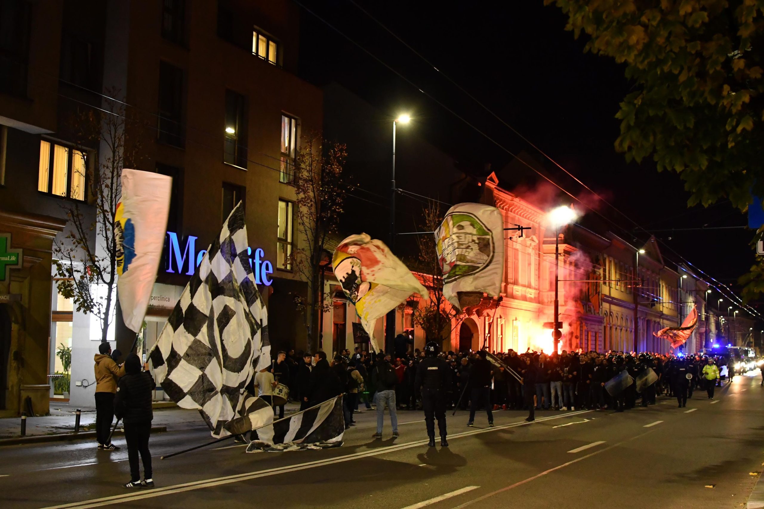 UPDATE: Galeria lui U Cluj tratează meciul cu rivala din oraș cu mare încrâncenare. „Studenții” se pare că vor asigura și spectacolul din astă-seară. Dar până să ajungă în peluză, aceștia s-au dezlănțuit pe străzile din Cluj! VEZI GALERIA FOTO