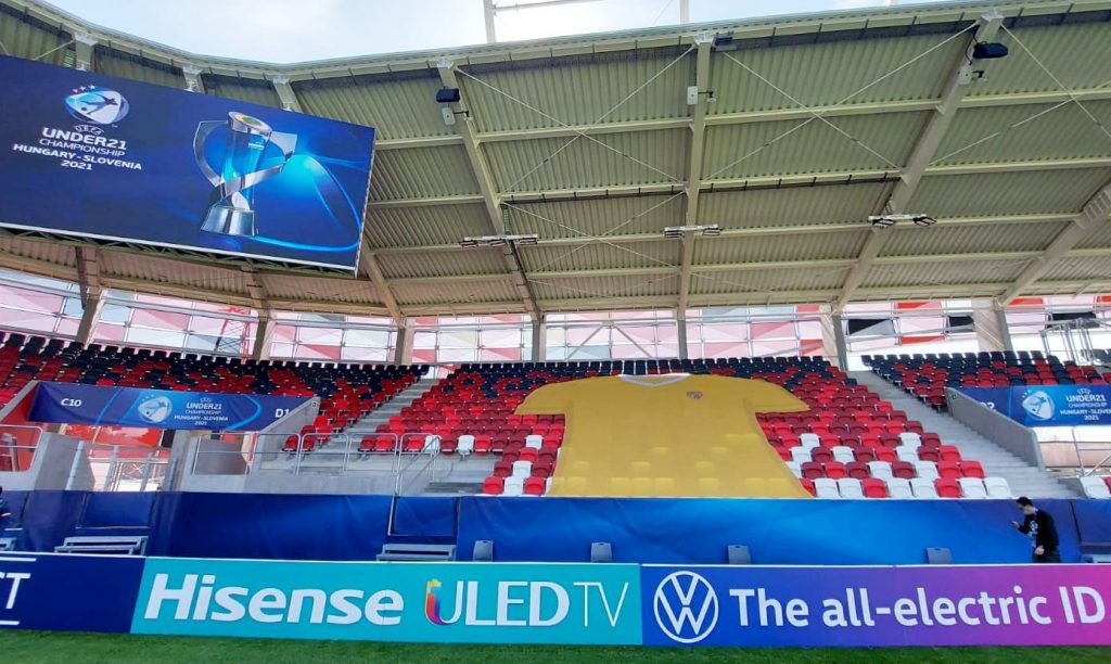 UPDATE: ora 16 – la meciul de sâmbătă seară, în peluză se află un tricou gigant al echipei naționale a României, cu dimensiunile de 10×12 metri. Acesta simbolizează susținerea fanilor de acasă pentru jucătorii din naționala de tineret, în acest aproape decisiv pentru calificarea din grupe. LUPTĂM ÎMPREUNĂ!