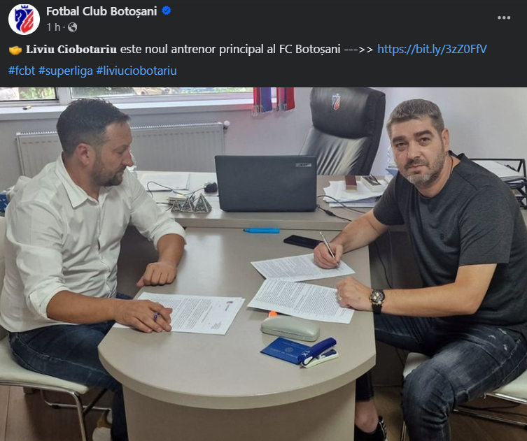 ”Suntem încântați să anunțăm numirea lui Liviu Ciobotariu în funcția de antrenor principal al FC Botoșani. […] Mult succes Liviu Ciobotariu în acest nou mandat pe banca FC Botoșani!