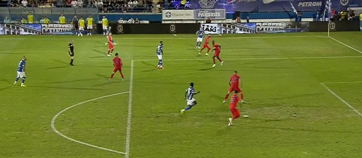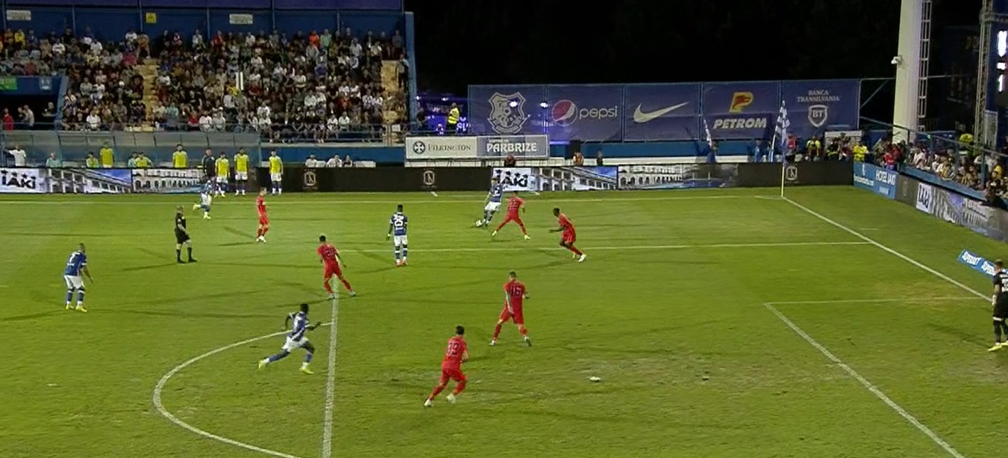 Apoi, același Louis Munteanu a ieșit la rampă în prelungirile primei reprize. A central ideal în spatele lui Tamm, iar Doukoure a pus capul pentru 2-0 (Min45+2).
