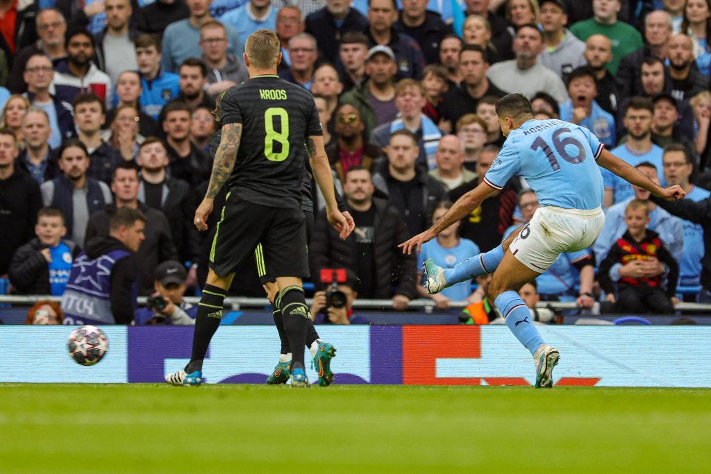 min. 7: Walker îl servește pe Rodri, iar ibericul trage, după un dribling reușit, pe lângă poarta lui Courtois.