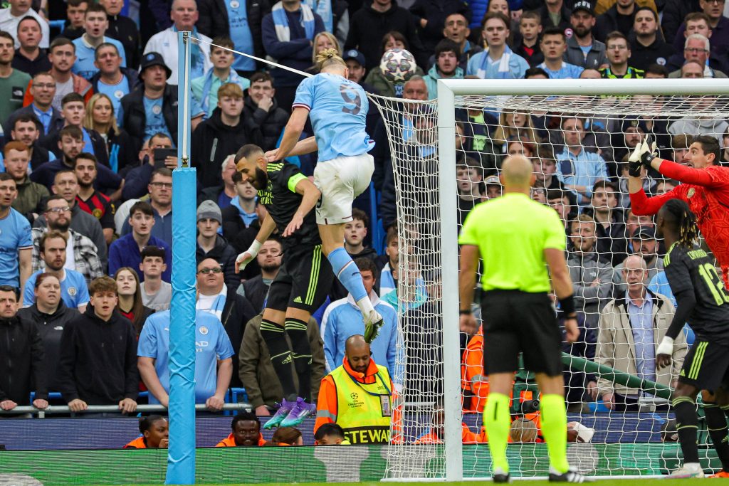 min. 7: Haaland este servit de De Bruyne, îl driblează pe Courtois, dar pierde balonul, fiind singurul ”cetățean” din atac. Camavinga a recuperat balonul și i-a salvat pe ”galactici”.