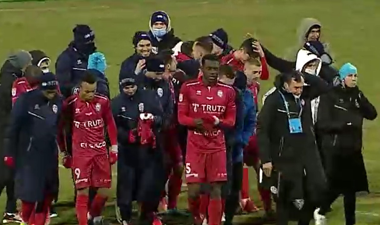 Imediat după meci, Marius Croitoru și-a adunat jucătorii la mijlocul terenului, le-a ținut un scurt discurs, ca apoi să dea drumul la sărbătoare.