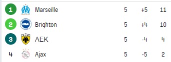 Meciul serii a fost cel dintre Marseille și Ajax, terminat cu scorul de 4-3 în favoarea francezilor. De fiecare dată, Marseille a condus la un gol diferența, dar Ajax a egalat. Olandezii nu au reușit însă să smulgă un punct din acest meci, jucând în inferioritate numerică din minutul 63 și sunt ca și eliminați din Cupele Europene. Iată rezultatele serii: