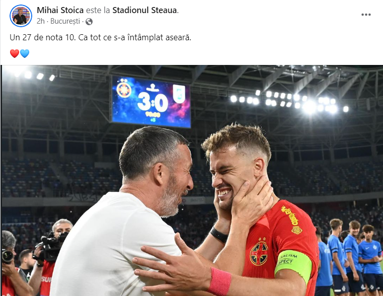 „Un 27 de nota 10. Ca tot ce s-a întâmplat aseară.”, a scris Mihai Stoica pe Facebook.