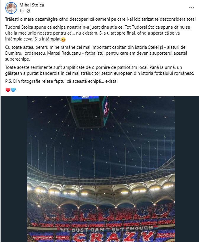 P.S. Din fotografie reiese faptul că această echipă… există!”, a scris Mihai Stoica, pe contul personal de Facebook.