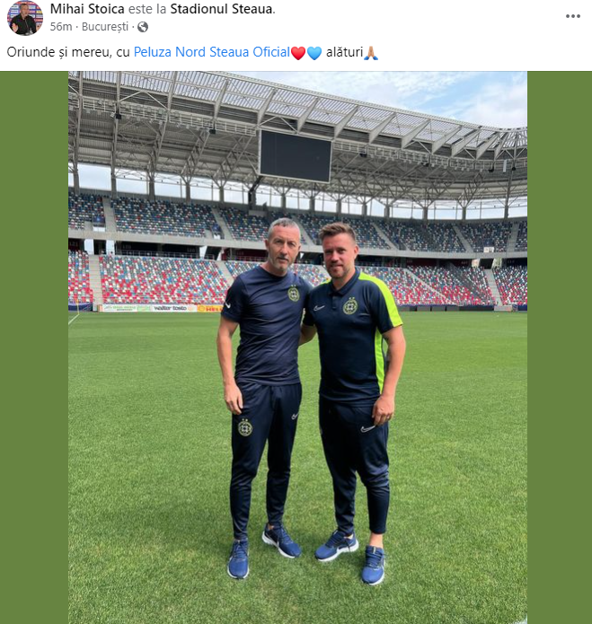 „Oriunde și mereu, cu Peluza Nord Steaua alături”, este mesajul care însoțește fotografia postată de Mihai Stoica.