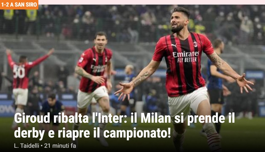 „Giroud o răstoarnă pe Inter. Milan câștigă titlul și reaprinde campionatul”, au scris cei de la Gazzetta dello Sport, imediat după meci.