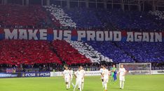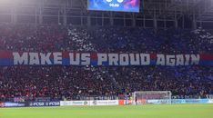 Miile de cartonașe roșii, albastre și albe care au compus puzzle-ul ultraseriei au încadrat un mesaj în engleză adresat jucătorilor, „MAKE US PROUD AGAIN”, în traducere „Faceți-ne din nou mândri”. Detaliul remarcat atât pe stadion, cât și de privitorii de la TV a fost sigla sponsorului principal Betano, imprimată la începutul bannerului uriaș. PlaySport a încercat să afle cum a ajuns brandul companiei de pariuri pe mesajul coregrafiei, un lucru total neobișnuit în peluze.