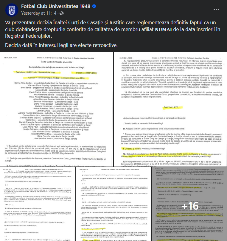 Ulterior, clubul FCU Craiova a publicat pe pagina sa de Facebook documente care, conform afirmațiilor lor, confirmă că un club dobândește drepturile conferite de calitatea de membru afiliat doar de la data înscrierii în Registrul Federațiilor. De asemenea, FCU Craiova a anunțat un „interviu exploziv” cu Adrian Mititelu, în care acesta promite să dezvăluie informații despre activitatea frauduloasă din cadrul FRF și implicarea președintelui Răzvan Burleanu.