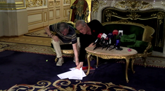 În timp ce îi acuza de rea credinţă pe „militari”, Gigi Becali a gesticulat nervos şi a aruncat pe jos un dosar plin cu documente ce îi aparţinea lui Argăseală. Becali s-a oprit din declaraţii şi a început să adune foile de pe jos.