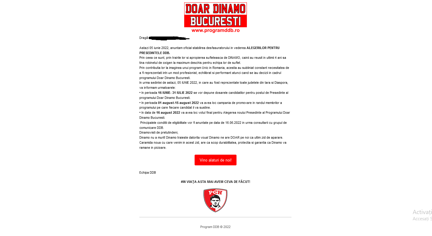 - în data de 16 august 2022 va avea loc votul final pentru Alegerea noului Președinte al Programului Doar Dinamo București.