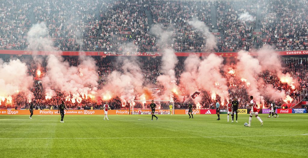 Ajax fans trying to get the game stopped as they’re 3-0 down to Feyenoord today.