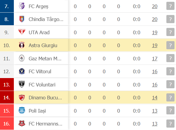 14 puncte au „câinii” după înjumătățirea punctelor, cu unul mai mult decât ultimele clasate Poli Iași și Hermannstadt. De partea cealaltă, Astra Giurgiu are 19 puncte.