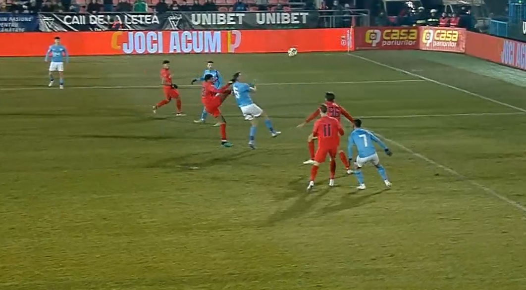 Pot spune că a pus în mod clar în pericol integritatea fizică a jucătorului de la Voluntari. Pot spune că este clar cartonaș roșu, pentru că este fault grosolan. Au fost în luptă pentru minge, de aceea nu spun că este atac violent.