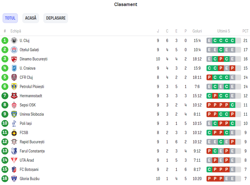 După această remiză, Dinamo ocupă poziția a treia în clasament, având 16 puncte acumulate în 10 meciuri și un golaveraj pozitiv, de +6. Oțelul Galați, care a rămas neînvinsă în acest sezon, se află pe locul secund cu 17 puncte, iar liderul SuperLigii este Universitatea Cluj, cu 21 de puncte din 9 meciuri jucate.