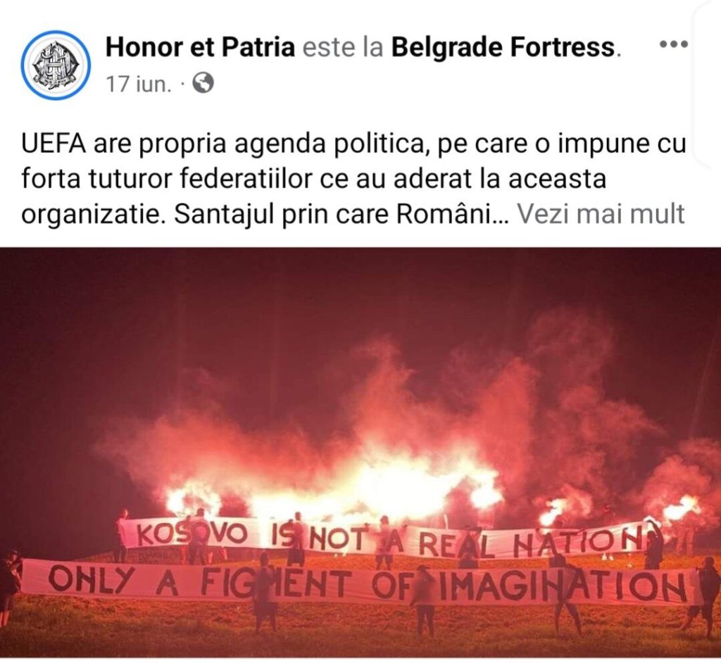 Grupul „Honor et Patria” a anunțat pe pagina de Facebook că nu se va prezenta la meciul dintre România și Kosovo.